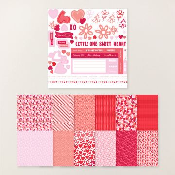 Das Designerpapier 12" x 12" (30,5 x 30,5 cm) mit Aufkleberbogen Auf die Liebe! lässt Ihr Herz höher schlagen – nicht nur am Valentinstag. Mit dem wunderschönen Motivpapier in Rosa und Rot sowie einem Aufkleberbogen voller lieber Grüße und süßer Formen fällt es leicht, tiefe Zuneigung auszudrücken. Ob Sie persönliche Karten, herzergreifende Scrapbook-Layouts oder alltägliche Projekte mit einer Extraportion Herz gestalten möchten – dieses Papier versprüht Liebe.