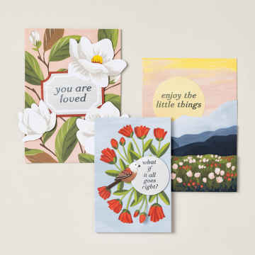 Gestalten Sie mit dem Kreativset Kleine Dinge drei Kunstwerke aus Papier, die florale und naturinspirierte Designs zeigen. Im Set enthalten sind Motive wie Magnolien, Tulpen, Berge und ein Vogel sowie inspirierende Botschaften, die in Ihrem Zuhause für eine positive Stimmung sorgen. Tipp für eine individuelle Deko-Idee: Präsentieren Sie Ihre Werke auf den Klemmbrettern aus dem Kreativset Achtsame Augenblicke (separat erhältlich).